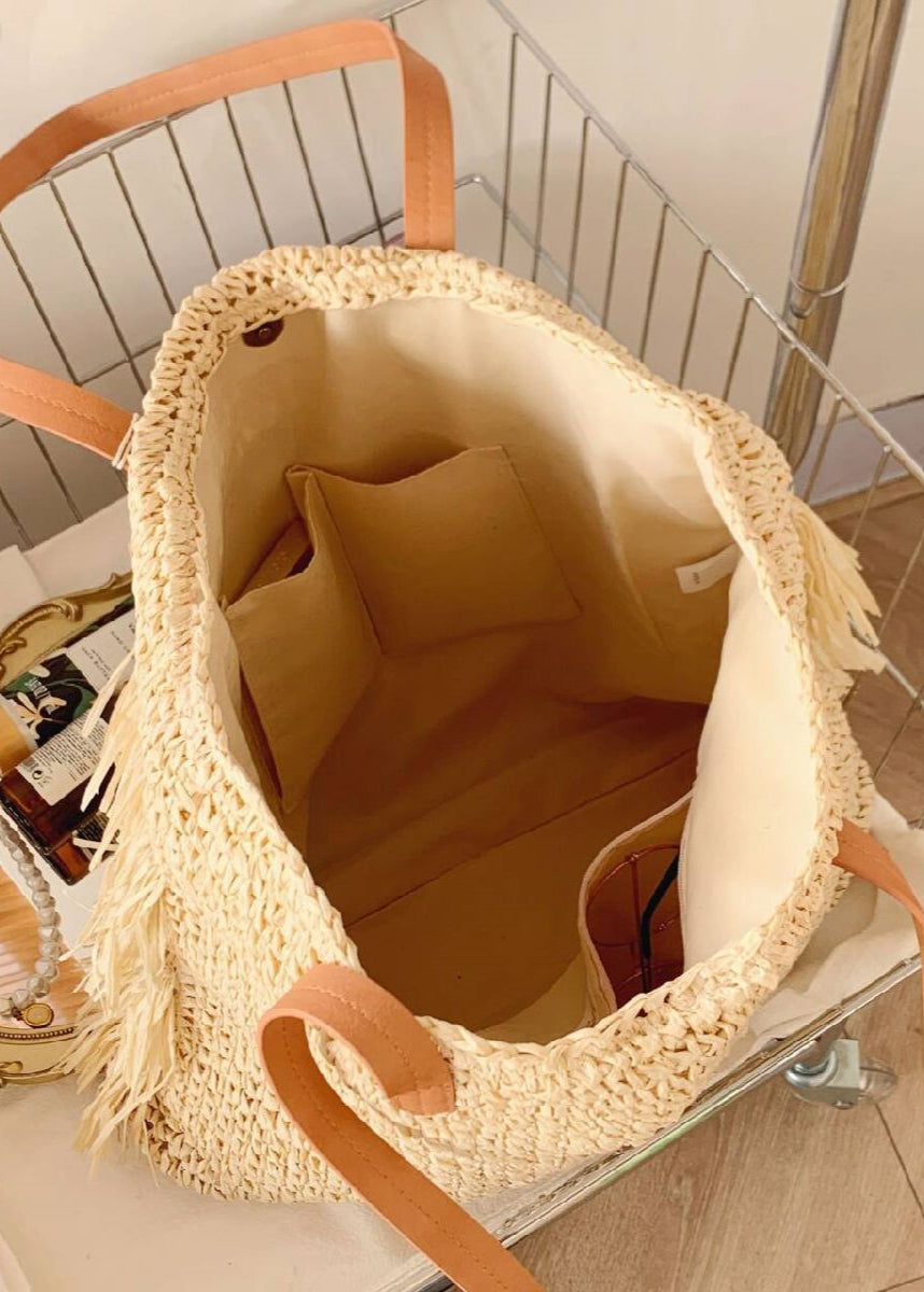 From golden beaches to bustling city streets, this woven fringe tote is the ultimate accessory for a carefree summer. The airy raffia texture and breezy fringe details instantly evoke a relaxed vacation vibe, while the versatile neutral tone ensures it matches effortlessly with dresses, swimsuits, or casual denim looks. Whether you're catching a flight, heading to the farmer’s market, or enjoying a seaside brunch, this tote will be your trusted companion for style and convenience.