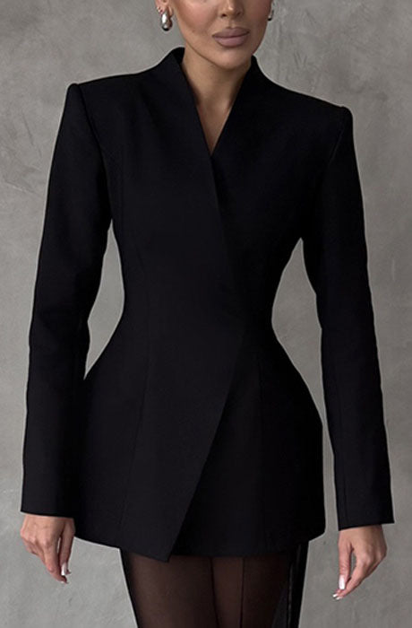 - Neckline: Notched collar