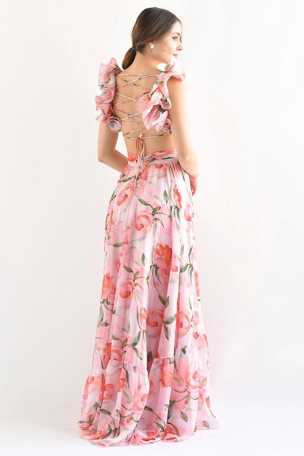 Product Name: Floral Ruffle Chiffon Maxi Dress