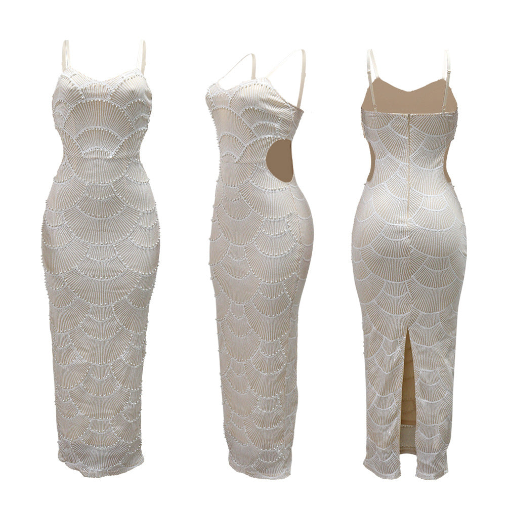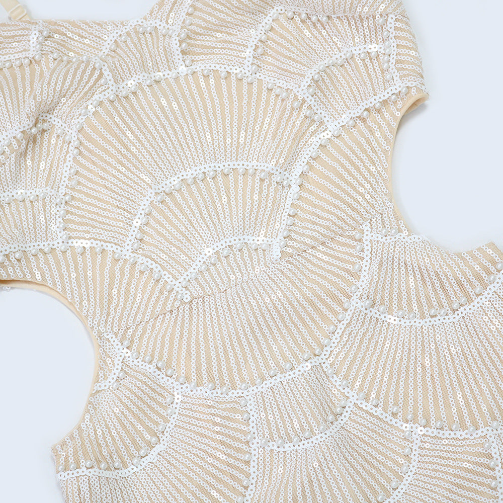 The most captivating aspect of this dress is its intricate sequin and bead detailing. Hand-sewn with precision, each embellishment adds texture and sparkle, reflecting light from every angle. The dainty straps reveal your shoulders and collarbone, while the sleek silhouette enhances your waist and elongates your figure—perfect for achieving that refined, socialite vibe.